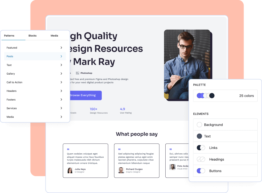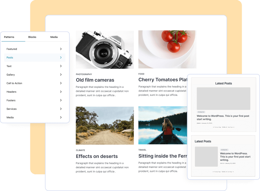 Los patrones de bloques son diseรฑos de bloques prediseรฑados que podemos insertar fรกcilmente en el contenido. Estos patrones pueden ayudarnos a ahorrar tiempo y a crear diseรฑos visualmente atractivos. Nos permite crear temas personalizados utilizando la plantilla basada en bloques.